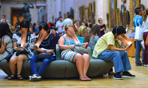 在信息時(shí)代,越來越多的人患上了手機(jī)上癮癥,變身低頭族。法國(guó)20歲攝影師安東尼·蓋革創(chuàng)造了一系列詭異照片,將手機(jī)變成了《哈利波特》中的“攝魂怪”,吸食著人們的靈魂。安東尼的這組作品將人臉和屏幕連在一起,看起來如同人臉被吸入了手機(jī)屏幕。